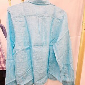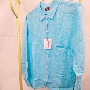 NWT UNTUCKit BLUSH AQUA 100% LINEN LONG SLEEVE BUTTON FRONT SHIRT SIZE 14