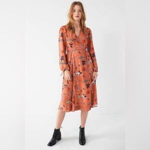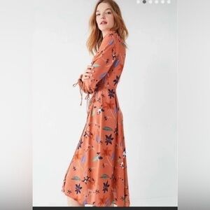 NWT UO Audrey Long-Sleeve Wrap Midi Dress in Rose/Tyrie Floral Size Medium