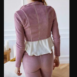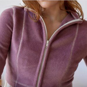 New with tag. Fleece jacket by Out From Under. Cropped above the waist and cut in a slim-fit with a standup collar and a two-way zip closure. Topped with seamed detailing throughout. Shrunken up fit, size up for looser fit.