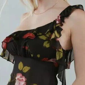NWT UO Kimchi Blue Chloe Asymmetric Black One Shoulder Blouse