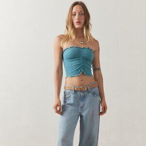 NWT UO Out From Under Honey Pinch-Front Blue Seamless Tube Top