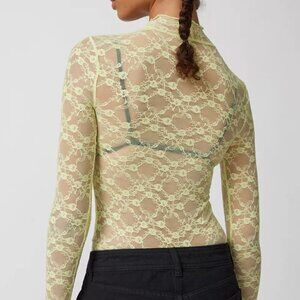 NWT UO Out From Under Luna Sheer Lace Lime Green Mock Neck Top