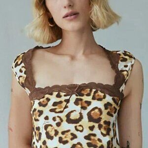 NWT UO Out From Under Vivian Square Neck Leopard Print Top