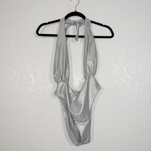 NWT UO Out From Under Silver Metallic Marina One Piece Swimsuit Size Medium