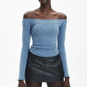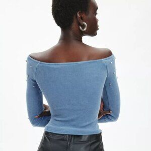 NWT UO Silence + Noise Della Shine Blue Boatneck Knit Top
