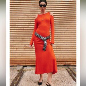 NWT UO Silence + Noise Xandra Knit Cold Shoulder Orange Maxi Dress