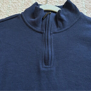 Light navy small ribbed cotton blend pullover. Feels like a lightweight sweatshirt. 1/4 zip. Small red pony.