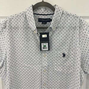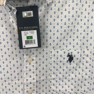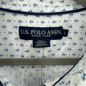 NWT U.S. Polo Association White and Blue Anchor Button Up Size L