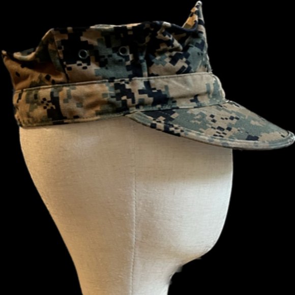 Brand New With Tags - USMC Woodland MARPAT patrol cap features machine-embroidered USMC Eagle Globe & Anchor insignia on the front. 50% Cotton/50% Nylon. Stitched top 8 point cover with ventilation holes.