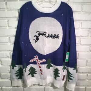 NWT Ugly Christmas Sweater Santa/Sleigh/Reindeer themed L
