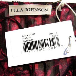 NWT Ulla Johnson Aliya in Fuchsia Diamond Print Silk Chiffon Dress 6 $665