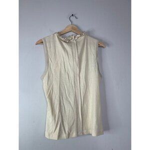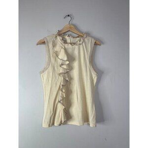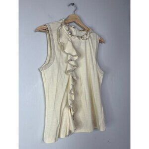 NWT Ulla Johnson Brea Ruffle Sleeveless Contrast Lightweight Wool Top Pearl XL