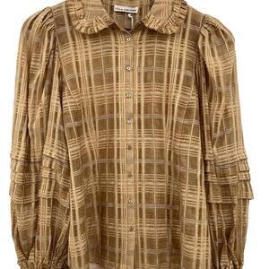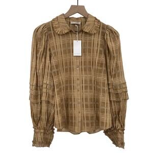 NWT Ulla Johnson Circe Plaid Blouse Chamomile Size 0 Ruffle Puff Sleeve Blouson