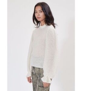 NWT Ulla Johnson Cream Laila Ruffled Alpaca-blend Lightweight Knit Sweater sz XL