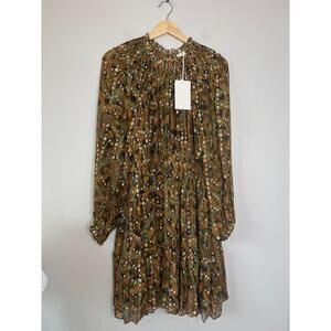 NWT Ulla Johnson Elisa Elastic Cuff Chiffon Pull-On Mini Dress Tiger's Eye