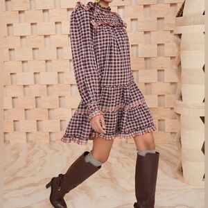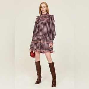 NWT Ulla Johnson Elm ruffled checked cotton-poplin mini dress