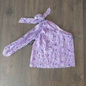 NWT Ulla Johnson Enid Lilac Purple Floral One Shoulder Bow Top Blouse, Size 0