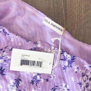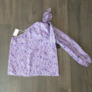 New with tags Ulla Johnson Enid Lilac Purple Floral One Shoulder Bow Top Blouse, Size 0