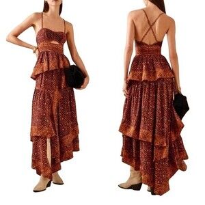 NWT Ulla Johnson Josana Cutout High-Low Silk Designer Dress Agate Size 6 $895