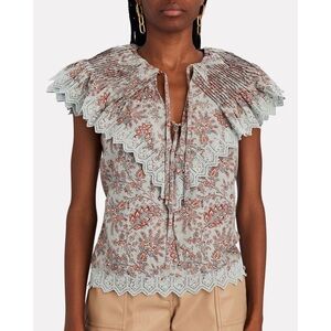 New with tags, never worn. Ulla Johnson Lea Lace Trim Eyelet Top. Size 4. 100% cotton