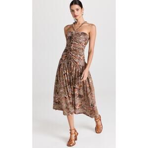 NWT Ulla Johnson Marcella Midi Dress Wheat Flower Drop Waist Cotton 8
