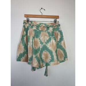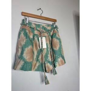 NWT Ulla Johnson Marin High Rise Green & Tan Mini Short Women's Calcite Size: 8