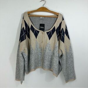 NWT Ulla Popken Von Landen Argyle Scoop Neck light gray melange Cardigan