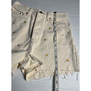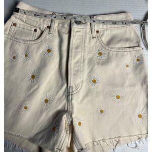 NWT- Ultra High Rise Daisy Embroidered Cream Denim Shorts By PacSun women’s 24