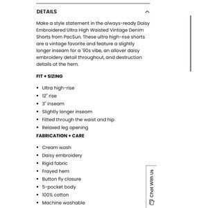 These new with tags PacSun ultra-high-rise denim shorts feature charming daisy embroidery and a relaxed fit. Crafted from 100% cotton, they ensure comfort and style for casual settings. excellent condition new with tags. See photos for approximate flat measurements. Casual, feminine, embroidered.