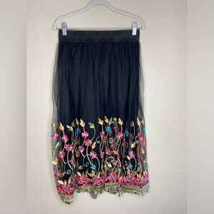 NWT Ultra Pink August Midi Black Skirt Mesh Embroidered Size M