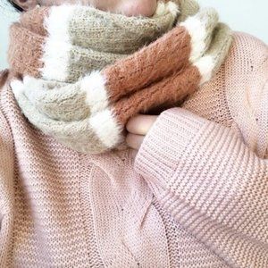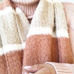 NWT Ultra Soft Cozy Fuzzy Neck Stripe Colorblock Infinity Scarf Peach Beige