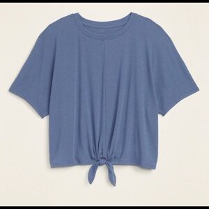 Go Dry Women’s Workout Top keeps you dry and comfortable. Crew neck, short sleeves, tie detail at the center front