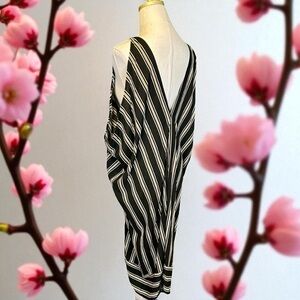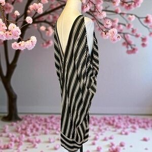 NWT Uma and Leopold Black, Tan & White Striped Sleeveless V-Neck Caftan Dress M