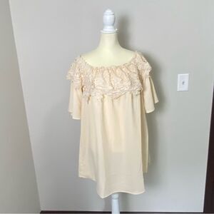 NWT Umgee Crochet Top Ivory Lace Short Flutter Sleeve Boho Mini Dress Women's Size S