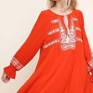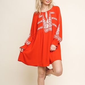 NWT, Umgee Embroidered Keyhole Dress with Tassel