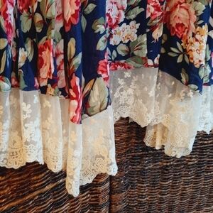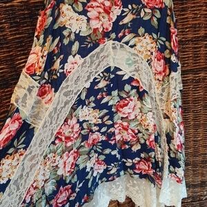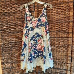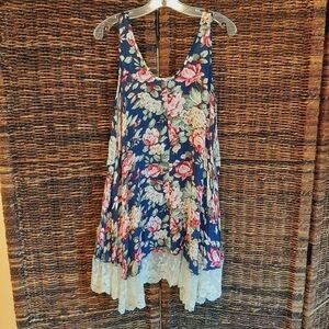 NWT Umgee Floral Lace Dress Tunic Tank Small Navy Blue Fairy Boho Cottagecore
