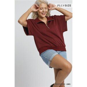 ✨NWT Umgee Full Size Half-Zip Short Sleeve Top Plus Size