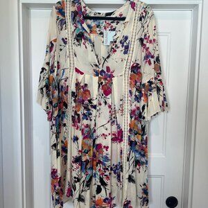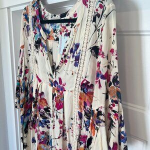 NWT Umgee Multicolor Floral Print Boho Tunic Top, Size 1XL