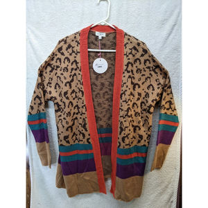 NWT Umgee Oversized Animal Print Open Front Cardigan Long Sleeve Top Medium