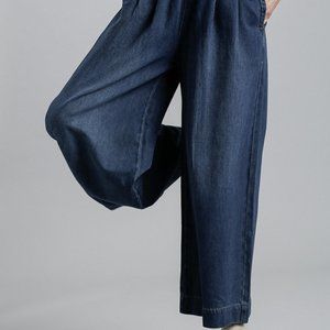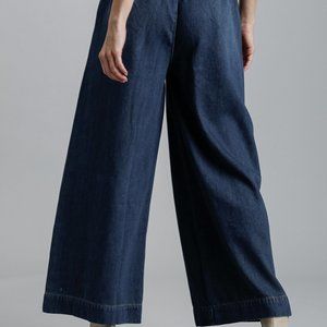 NWT, Umgee Paperbag wide leg non-stretch denim jeans with pockets, dark denim. Current fashion trend, big jeans style.