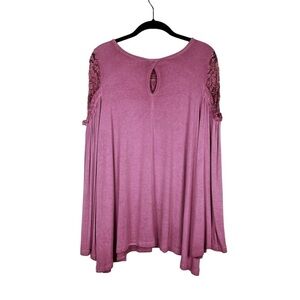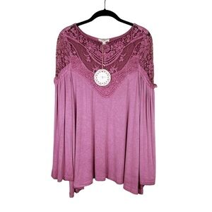 NWT Umgee Pink Lace Bell Sleeve Keyhole Back Tunic Top