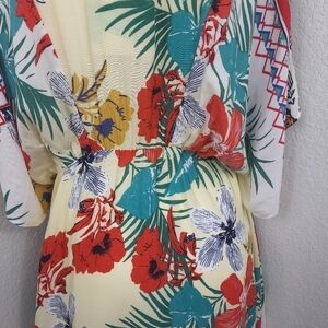 NWT Umgee Tropical Print Kimono Sleeve Cinch Waist Dress Size M