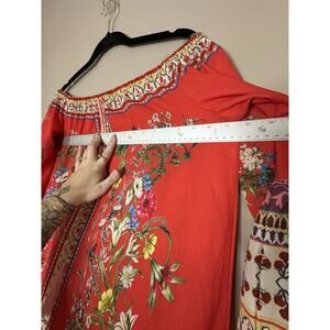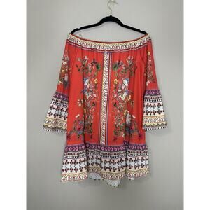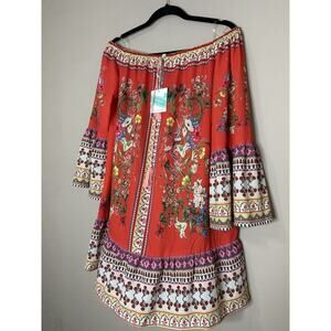 NWT Umgee Womens Red Floral Off The Shoulder Dress Scarf Print Size Small