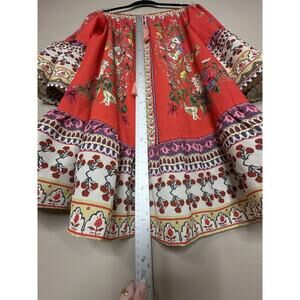 This NWT Umgee Women's Red Floral Off the Shoulder Dress in size Small is a stylish and versatile piece perfect for parties or casual occasions. The dress features a beautiful floral pattern in a vibrant red color, with an off the shoulder neckline and bell sleeves adding a touch of femininity. Made from a blend of polyester and cotton, it is lightweight and designed for comfort. Hand wash only to maintain its quality, this short-length mini dress also boasts tasseled accents for added flair. Perfect for the summer, fall, or spring seasons, this bohemian-themed dress from UMGEE is a must-have for any fashionable woman's wardrobe.