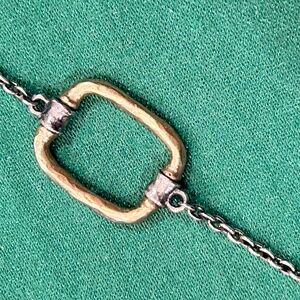 NWT - necklace will arrive in a Grace & Heart purple felt bag. Classic two tone silver and brass necklace. Geometric design. The necklace measures 40” long. Four of the rectangles are 1” X 3/4” and three are 5/8” X 3/4”. Transitions well between day and evening.