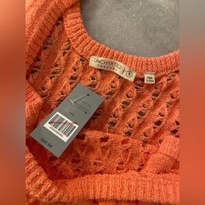 NWT Uncharted Threads Size S Coral Stretchy Knit Crochet Terry Cover Up Dress