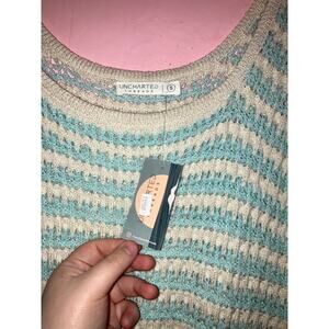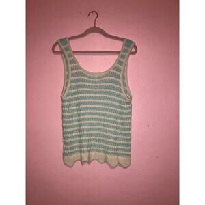 NWT Uncharted Threads light blue and cream crochet knit tank top size small