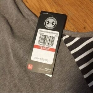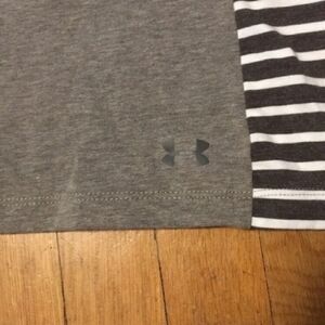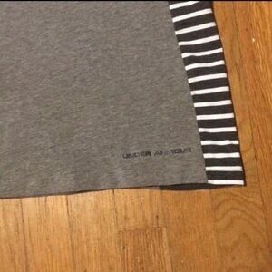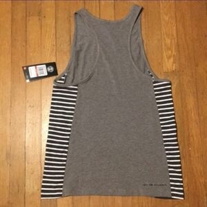 NWT Grey/gray under armor heat gear high neckline tank top with striped accent design down the sides.