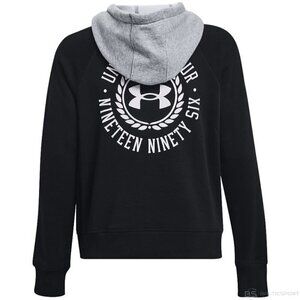 NWT Under Armor Rival Fleece Black and Gray Colorblock Hoodie Size Large