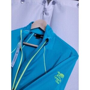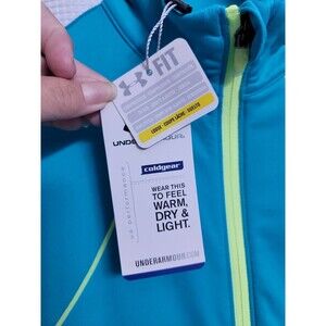 Elevate your activewear game with this NWT Under Armour Command Full-Zip Loose Fit Jacket in women's size small. The jacket features a solid blue color, short length, and a full zip closure for a comfortable and relaxed fit. The outer shell material is made of polyester, making it durable and easy to maintain.
